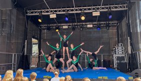 Ein besonderes Highlight war der Auftritt der Wettkampfgruppe auf der Bühne am Rathaus. Mit einer gelungenen Mischung aus tänzerischen und akrobatischen Elementen präsentierten die Turnerinnen ihr Können und begeisterten das Publikum mit viel Freude und Engagement.